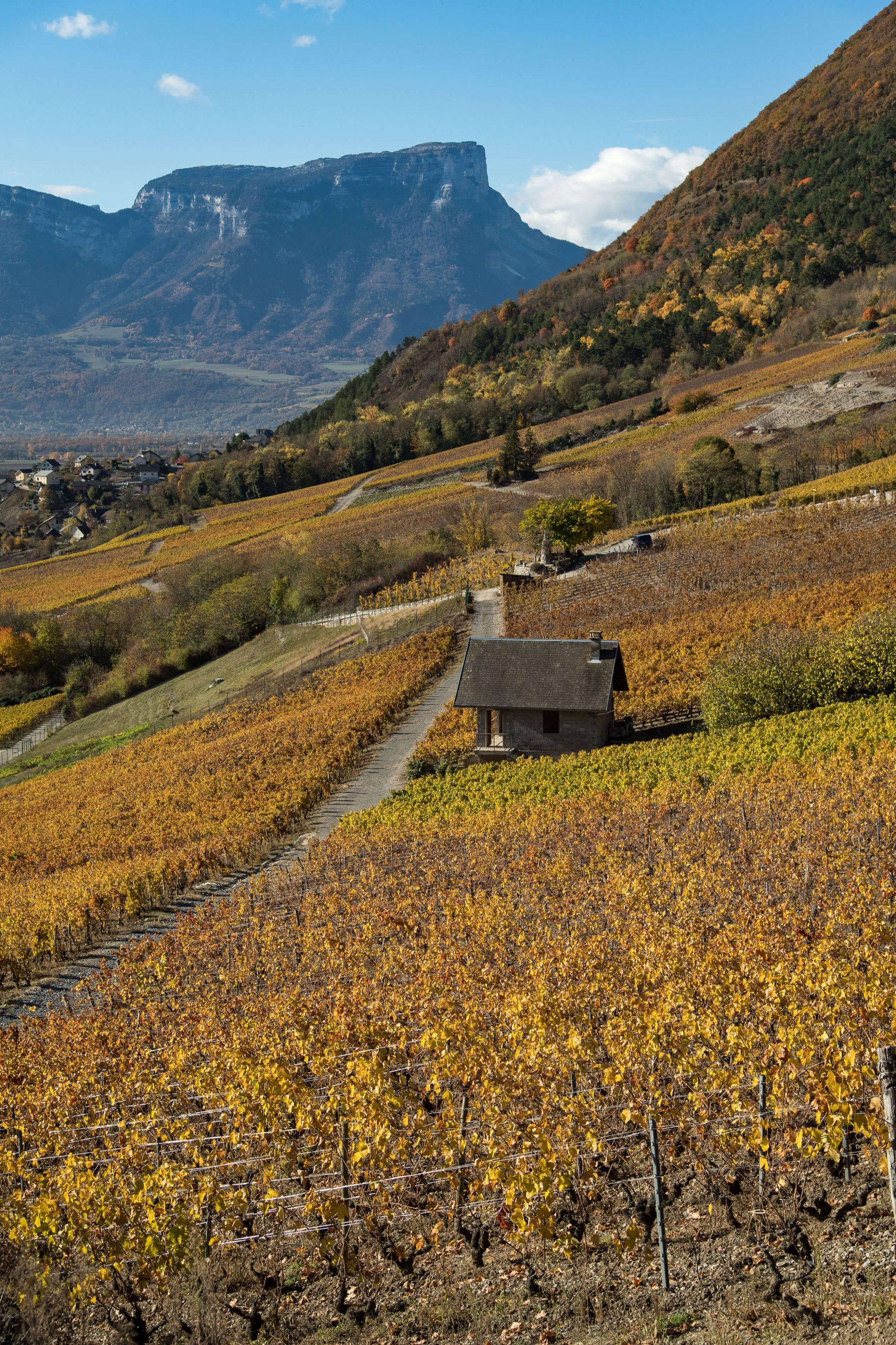 ドメーヌは ボージュ山塊のふもと、シャンベリーとアルベールビルの間に位置し、畑は南向きの丘の中腹25 haに広がっています。