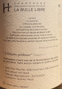 パスカル・エナンを引き継いだロマン・エナン氏とトマ・エナン氏はドメーヌ名をLa Bulle Libre” に改名しました。新たな旅立ちを記念する最初のキュベです。
