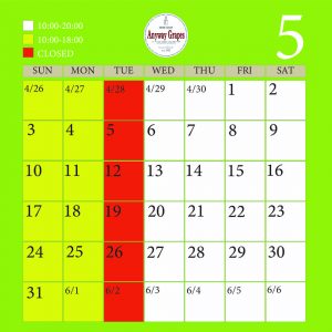 2026年 5月 営業日のご案内:火曜定休